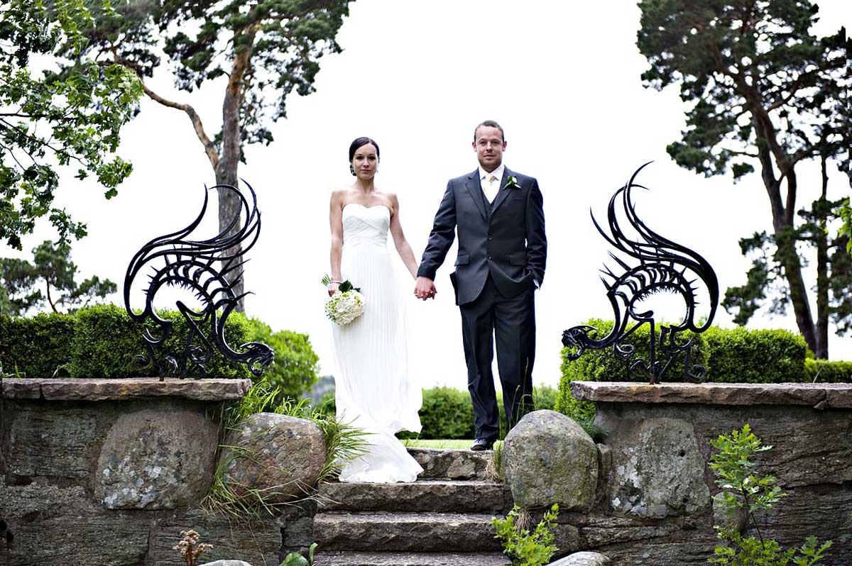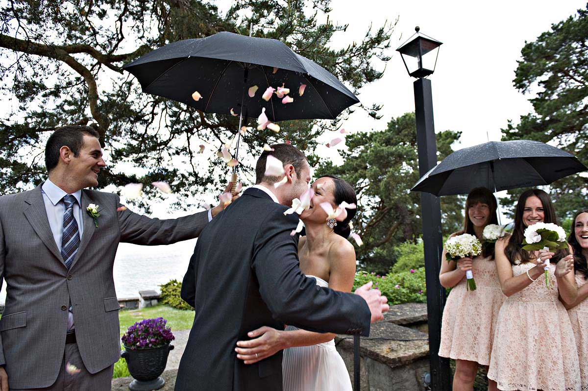 Högberga Gård is also a perfect place for a rainy wedding. I won my Nikon Best photographer award there, the efficient staff coped wonderfully at Högberga handing out umbrellas immediately, and I saw a great opportunity to photograph a memorable photo.   They also have one of my fave places to take wedding photographs in Stockholm an arch with a yellow background.